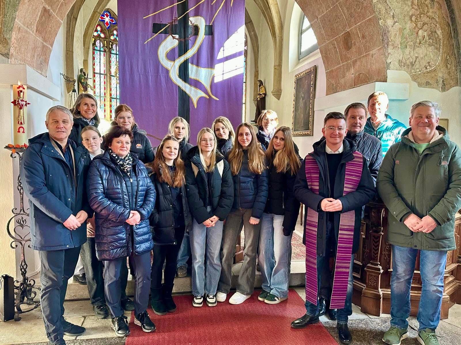 Dabei setzten sich die Schülerinnen kreativ mit der Bedeutung der Fastenzeit auseinander und brachten ihre Gedanken in Farben, Formen und textile Gestaltung ein. Das fertige Fastentuch wird während der Fastenzeit den Altar verhüllen und Besucherinnen und Besucher dazu einladen, innezuhalten und sich zu besinnen.